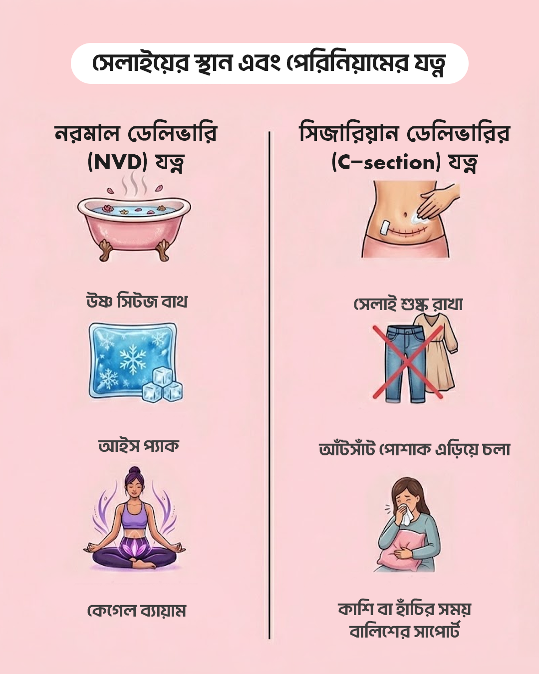 সেলাইয়ের স্থান এবং পেরিনিয়ামের যত্ন-